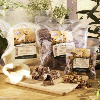 Le goûter léger pour les chiens âgés qui ont moins de forces pour mastiquer, mais ne veulent pas renoncer au plaisir de mâcher. Avec des produits faciles à mâcher et digérer. Ce mélange se compose de : Mou de bœuf 250 g Friandises en forme de cœur 300 g Oreilles au miel 5 pièces Friandises premium de friGera Avec plus de 20 ans d’expérience dans le traitement de la viande fraîche et des friandises sèches, friGera garantit des normes de qualité très strictes : Nous ne gâtons votre petit compagnon qu’avec les meilleures friandises - matières premières sélectionnées de première qualité et fabrication minutieuse. Pour ses produits, friGera utilise exclusivement des marchandises provenant d’abattoirs de l’UE, également adaptés à la consommation humaine. De plus, les matières premières proviennent sans exception d’animaux sains et examinés par un vétérinaire. Les concessions sur la sécurité et la qualité d’un produit sont exclues pour friGera. C’est pourquoi friGera considère que le respect de toutes les lois et dispositions est essentiel. Supplément pour chiens. ...En savoir plus