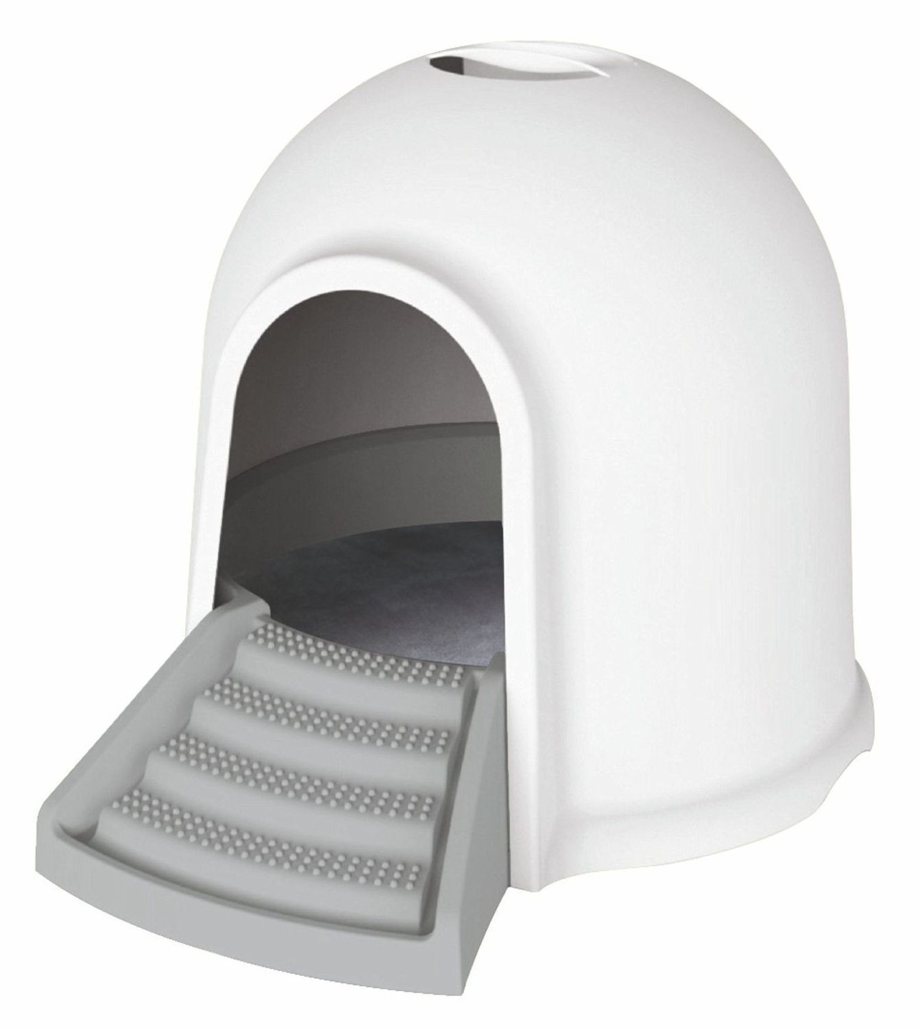 L'absence de porte sur cette maison de toilette pour chat facilite le passage de l'animal et offre une aération naturelle. De petites marches sont placées à l'entrée afin d'éliminer les grains de litière sur les pattes de votre animal domestique après sa toilette. Grâce à une poignée intégrée sur le dessus, vous pouvez la déplacer aisément.