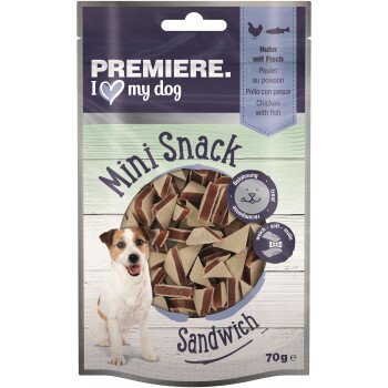 La boutique des animaux de Compagnie a sélectionné pour vous le produit "PREMIERE Mini Sandwich poulet et poisson 70 g" au prix discount de 3.39 €.