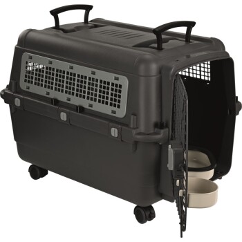 Porte à grillage métallique avec mécanisme de verrouillage rotatif et fermoir de sécurité pour une ouverture rapide et une fermeture sûre Manipulation facile grâce à une poignée et un rouleau pratiques Jeu de roulettes composé de deux roues avant pivotantes avec système de blocage et de deux roues arrière fixes Les gamelles à nourriture et à eau en plastique peuvent être accrochées à la porte à des hauteurs individuelles Matériau : Polyester, fer La caisse de transport répond aux directives définies par l’IATA (International Air Transport Association). Veuillez noter que la décision finale d’acceptation d’une caisse transport relève de la compétence de la compagnie aérienne. ...En savoir plus