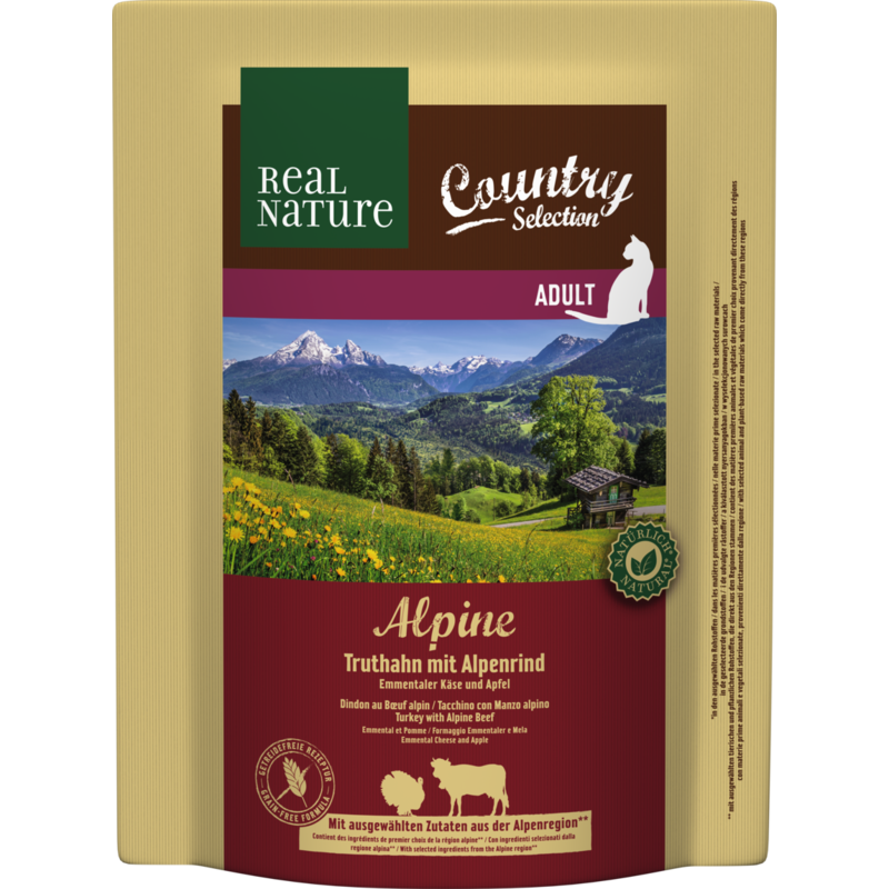 REAL NATURE Country Alpine au dindon et au bœuf alpin ; à l’emmental et aux pommes 300 g